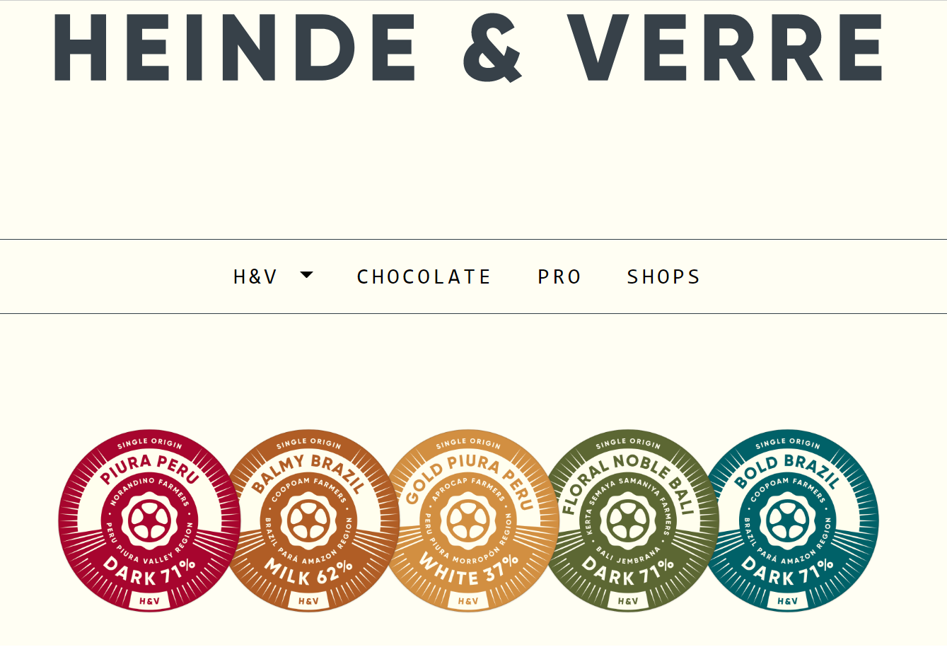 Heinde & Verre produce a line of fine chocolate with complex simplicity. Their chocolates have a very smooth well crafted finish, deep flavour, yet with very simple high quality ingredients.