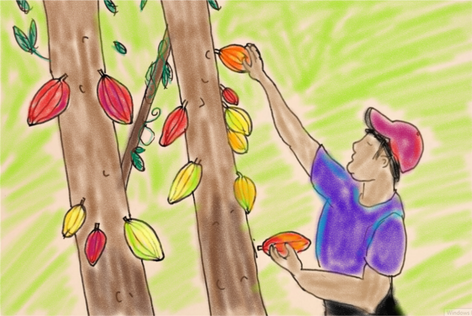 Harvesting is still done by hand. For over 5000 years, cacao is still harvested in a similar manner, with each pod being carefully taken off the tree by hand and cut open one by one. There is no mechanized way to collect cacao pods as there is for some other cash crops. If the seeds are accidentally sliced open, they have to be discarded, as they could mould and develop off flavours that may affect an entire batch of cacao seeds. This care that is required cuts into time and profits, a balance that's not always easy to achieve for some growers.