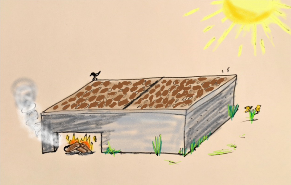 Forced Air: This is a more efficient way of delivering heat while reducing or eliminating the amount of smoke reaching the drying beans.